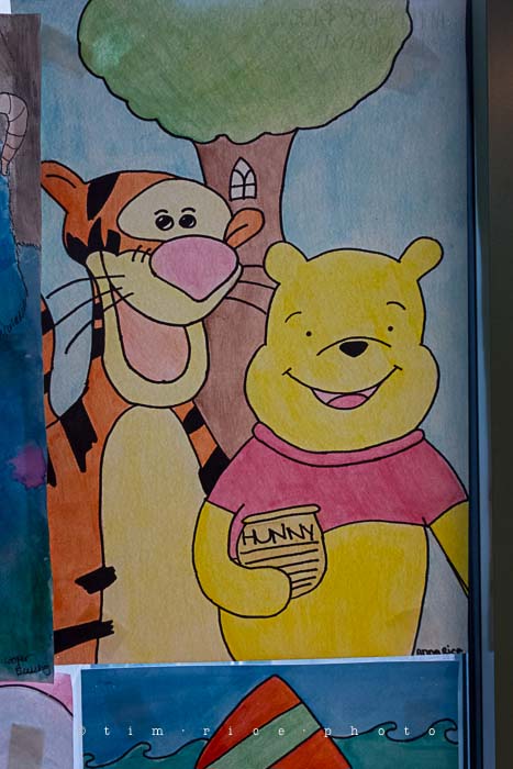 Headed out to my old High School to watch Danny sing and check out some artwork hanging from both kids. Roam the halls and stopped here for a moment. Those in the know, well, know what room this is, was. It is now mislabeled, has been for a while. Look closely and you can even see the shadow of a name on the door. There has been quite a bit of renovation done to the school, yet this door is still there. Check out some artwork by the kids below.