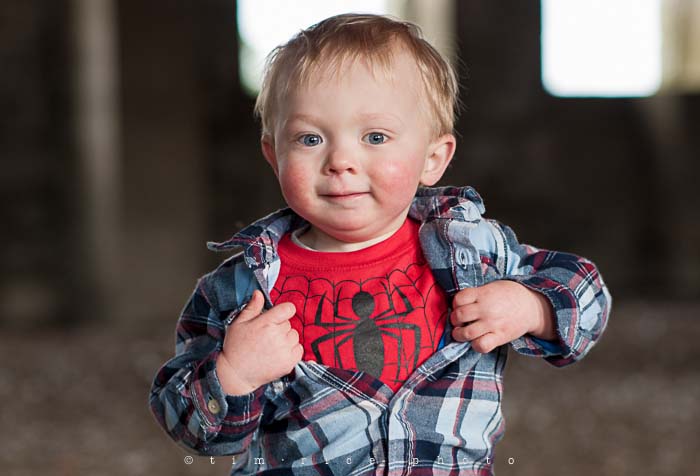 Lukas is ready to jump into action, though he is not really good at the ‘hiding the secret identity’ thing. I always love hanging out with this little guy, I have shot photos of Lukas almost every 6 months since he was born. I mentioned yesterday how I had a few maternity shoots cancel over the years… well, his mom went into labor they day of our scheduled session. She was to be my first maternity shoot, instead I was photographing him 10 days later, making him one of the youngest sessions I have had. There was a lot less running around at that newborn session… every six months he reminds me, he is not the only one getting older. I had to beg him to show me his Spider-man shirt, but we finally got the shot for his 2 year shoot. Happy Birthday Lukas!