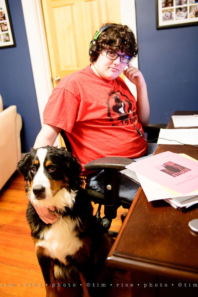 I got Dan in the dailypic. I bothered him while he was studying for mid terms… so he was happy to let me take a photo. Josie was keeping him company.