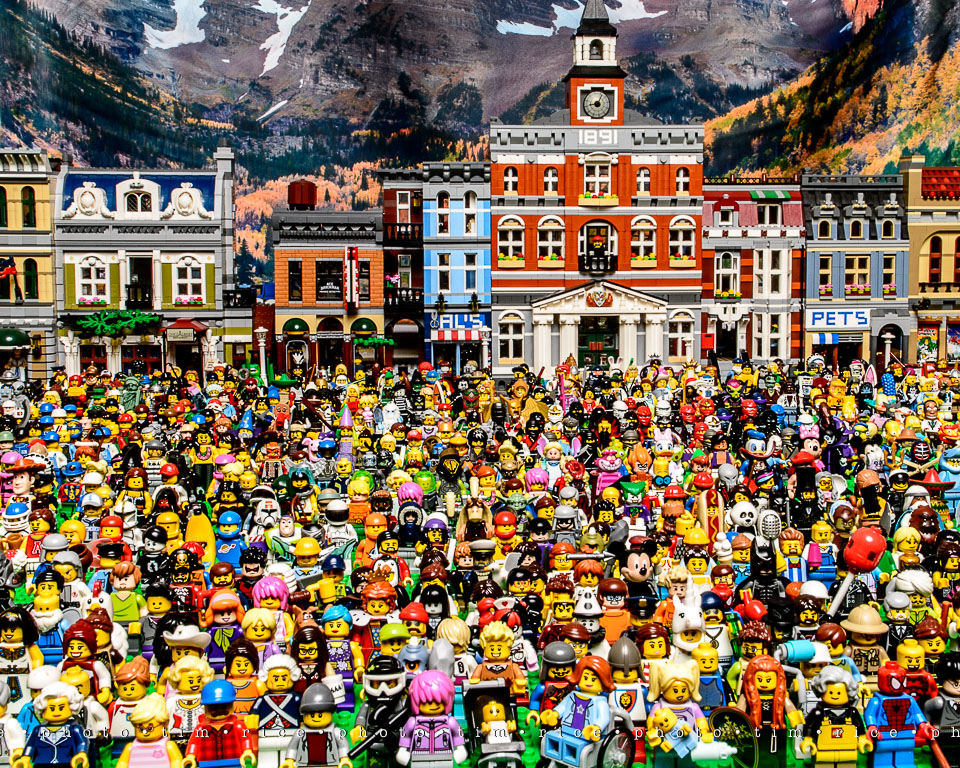 This is not photo-shopped, this is a real scene. A friend had me photograph her collection, her Legos and the photo are used for non-profit actives. I can not wait to see one of these blown up large, it is like a Where’s Waldo. Legoboy is there, if you don’t see him look below.