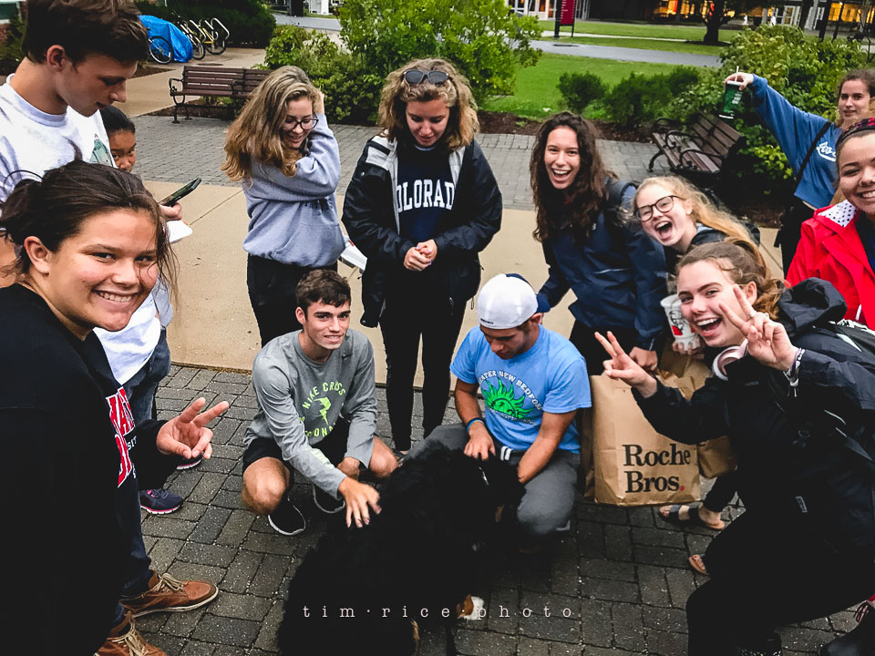 Josie and I took a ride this evening to Bridgewater State to say hi to Anna. You want to draw a crowd at a college, bring a big, fluffy, happy dog. She was the hit of the campus.
