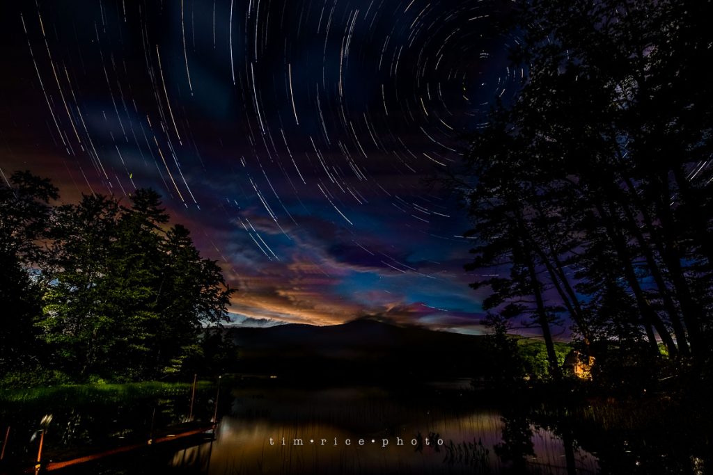 So, I said I would try again, here it is. Third time is the key (though, I will admit I am trying one more time tonight). Less clouds, kicked it off with some light still in the sky, raised the view and took a longer series. The right side is darker, I had a moon in the sky the last time, but I love the colors. I also took one with a different view in the middle of the night, no lake, but more stars. You can even see some ‘non-star’ movement going in other directions, there is a red line going thru the middle almost North to South.