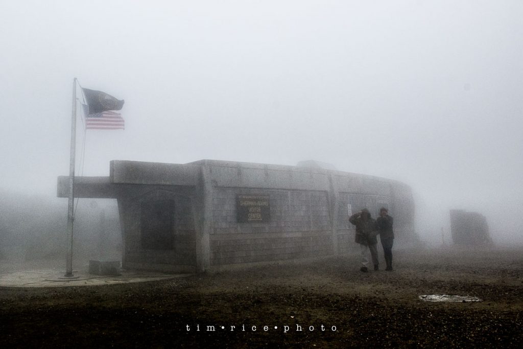 Took a morning drive up Mt. Washington today. An eight mile drive up, first 5 – beautiful fall scenery, last three… clouds, winds, no visibility, then the peak… winter. The dogs were in heaven at the top, in the habitat they were built for. Even in these conditions, they were drawing attention from everyone. Perfect trip up.