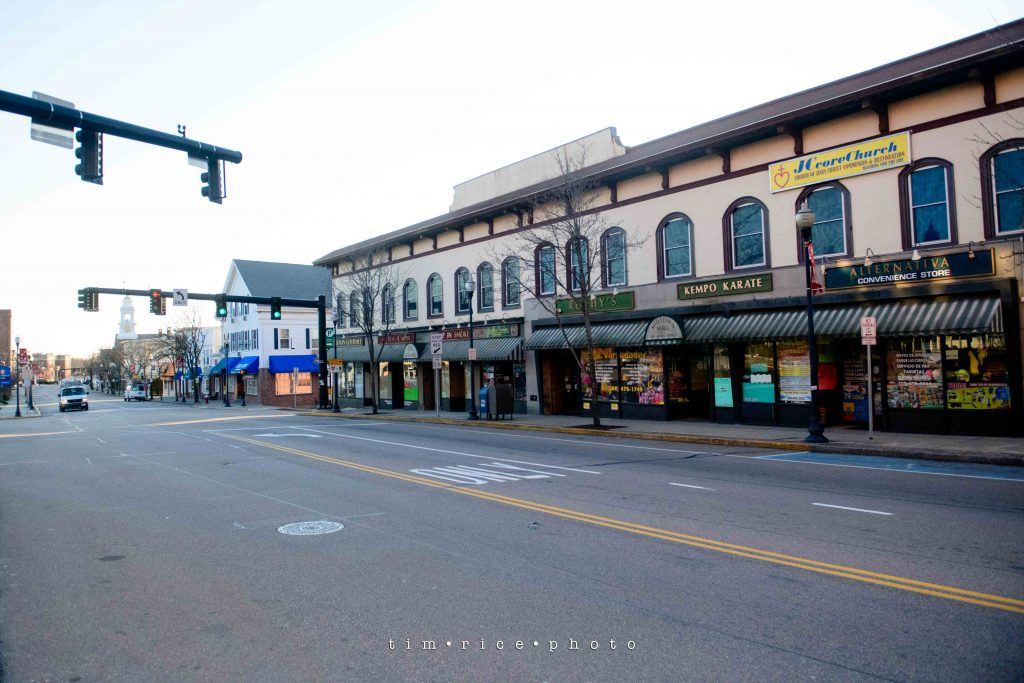 The timestamp of the photo says it all. This is Rte 495 facing North between exits 18 and 19, the main artery in my part of the state. Below I have downtown Milford, standing in the middle of Main St. while the light is green at 8am. Above Medway at 9am. Traffic is light. Everywhere.