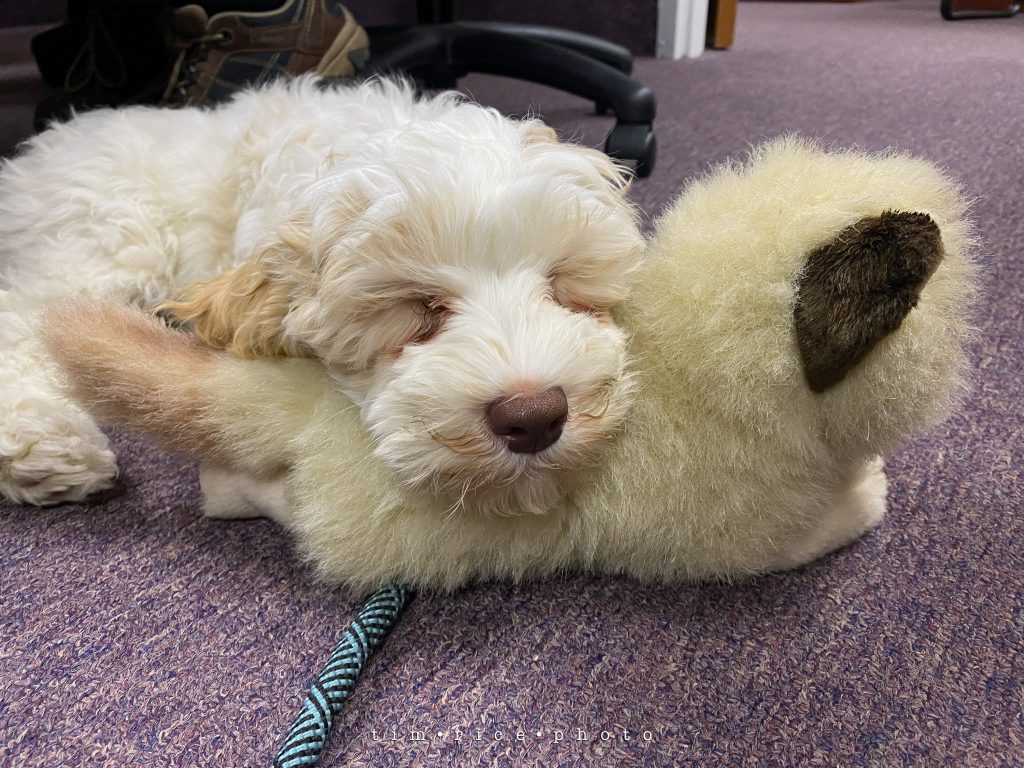 More friends with new puppies. This is Milo, an Australian Labradoodle, the fluffiest and sweetest little guy. I got to hold him for most of his studio visit this morning. It made my day.