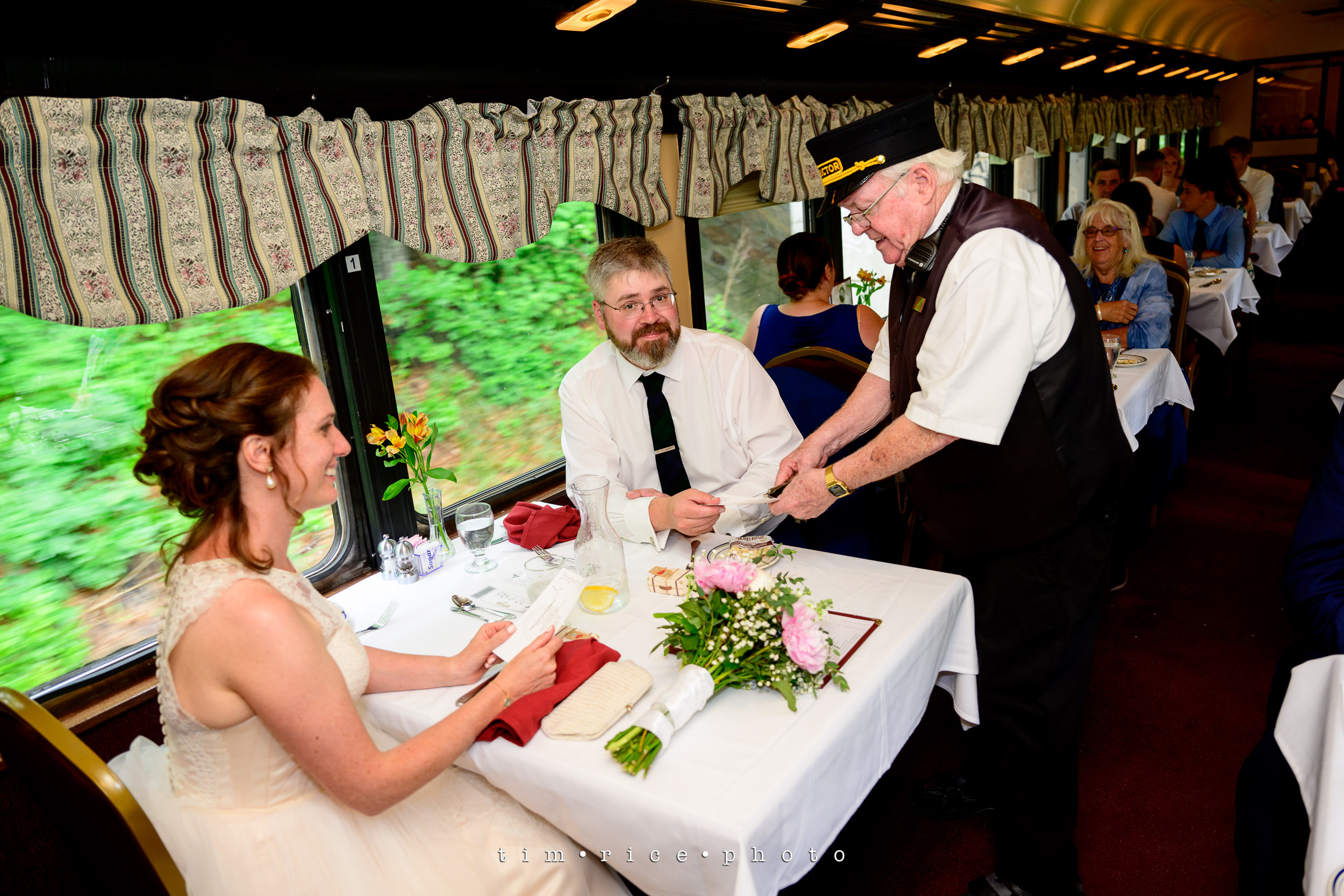 Tracey and Caleb got married this morning in a small ceremony in Yarmouthport, then joined up with all their friends and family and hitched a ride on a train. The Cape Cod Central was theirs for the afternoon. With a three-hour scenic ride, an incredible dinner, and a stop along the canal for a cake cutting, it all made for a perfect wedding day. Congratulations, Tracey and Caleb. Thank you for letting me tag along for the ride.