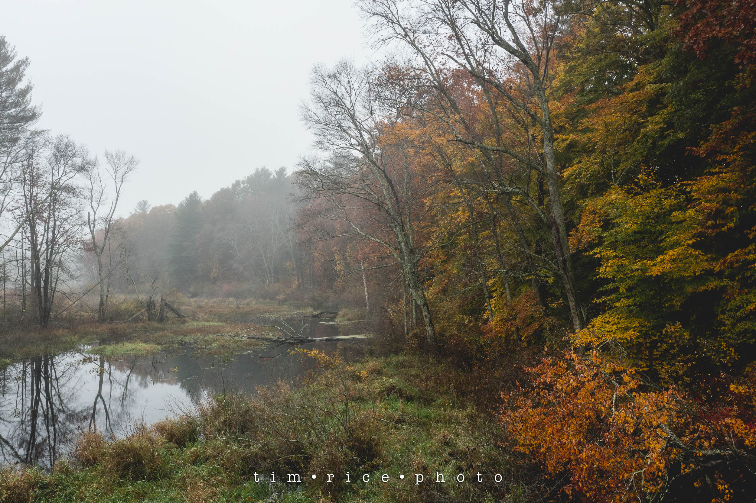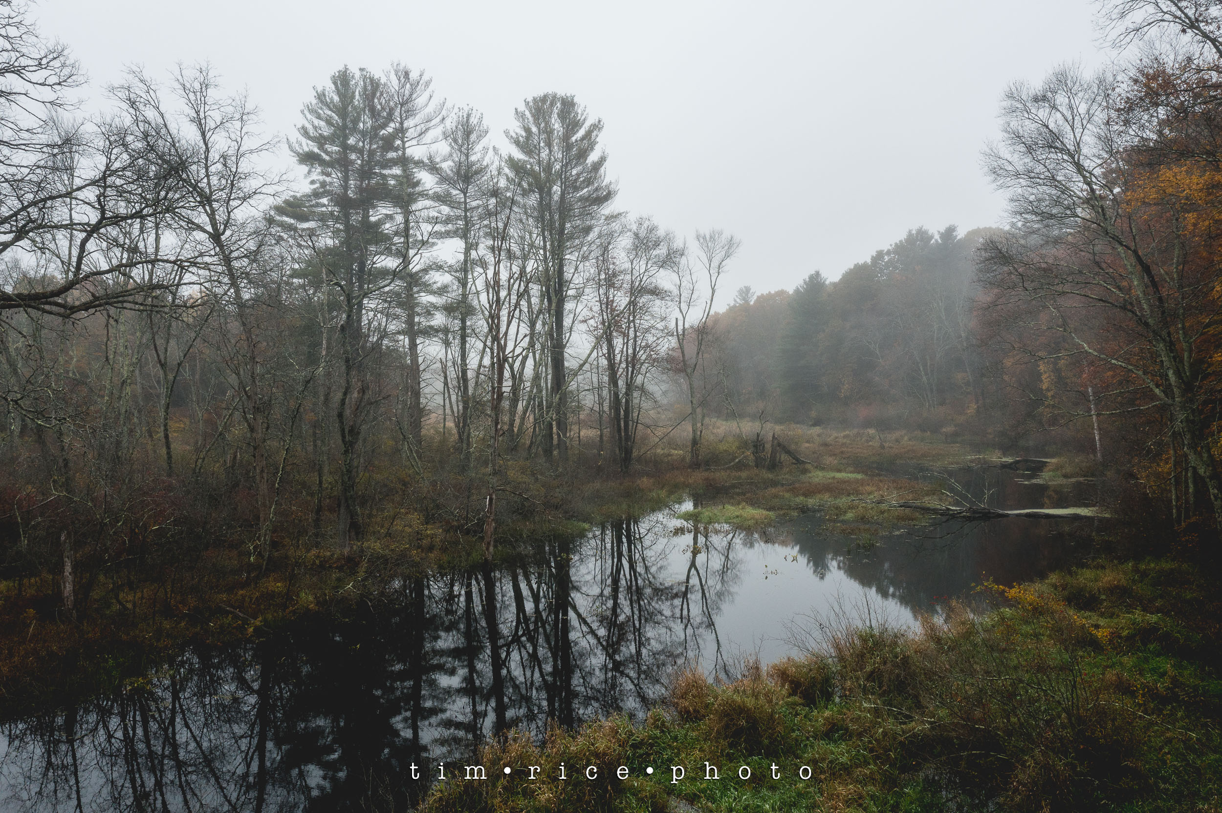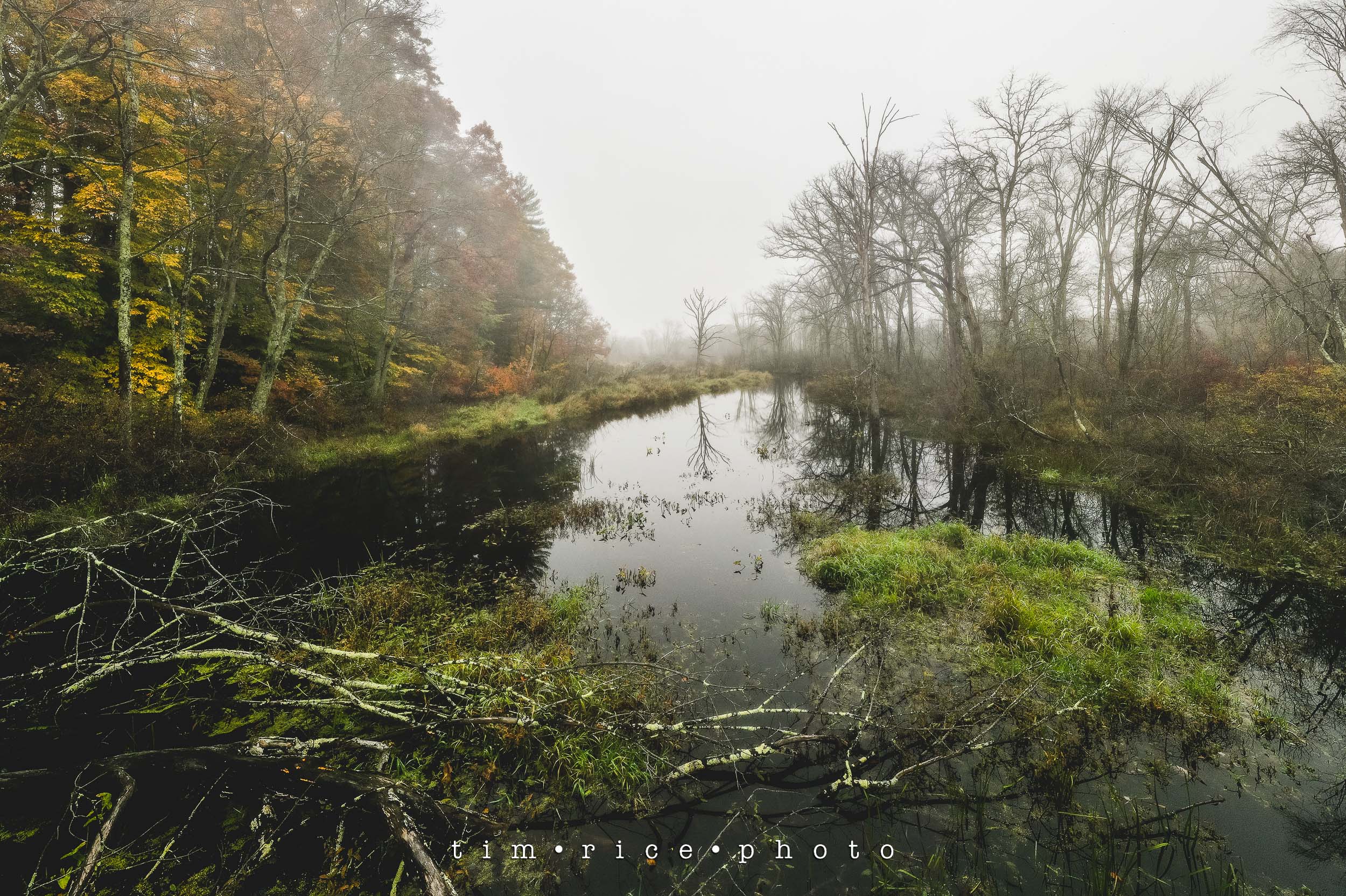 Between some sessions this week, I took a few minutes to explore the fogged in Bogastow Brook in Millis, MA. It was like everything was muted. And there was a height where visibility went from muted to white. About 50 feet up was all it took. I love the mood and tone. These were taken at about noon.