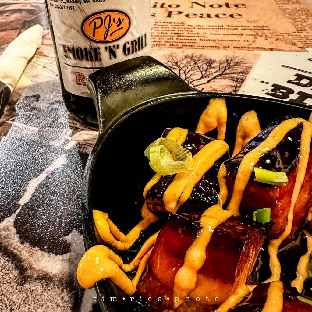 For almost two weeks, we have dined out every night. Not counting the spot night here and there where we had cereal, we have gone to a restaurant or gotten takeout while the house gets back in order. Thanks to some gift cards from generous friends and just some personal choices, I think we have gotten to almost every option in Medway and a few more in surrounding towns. 45, Mickey Cassidys, Hang Tai, Yama Fuji, Medway Cafe, Pepps, Red Tavern, Papa Ginos, Village Pizza, and tonight was PJs. PJs Pork Belly appetizer is excellent (above). No offense to any of those places, but I am ready for my wife to cook me dinner again.