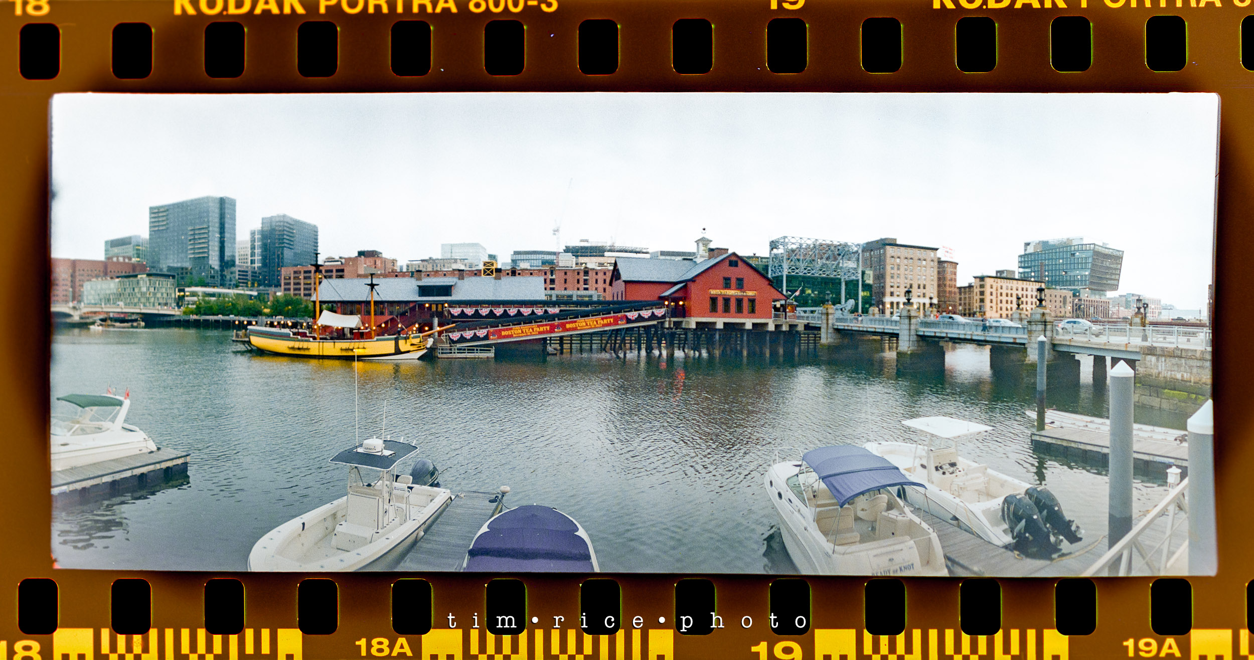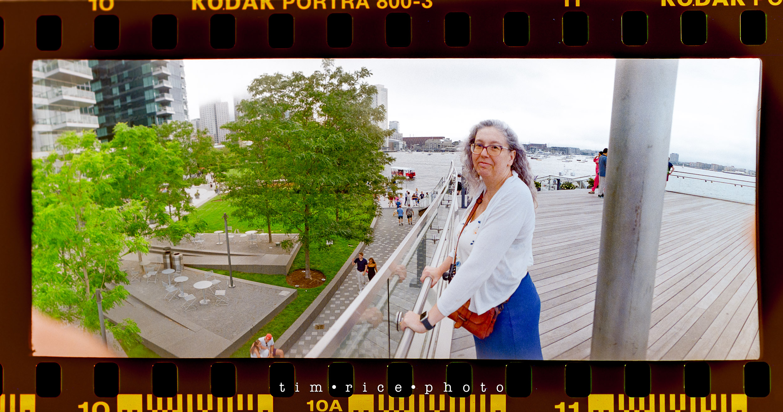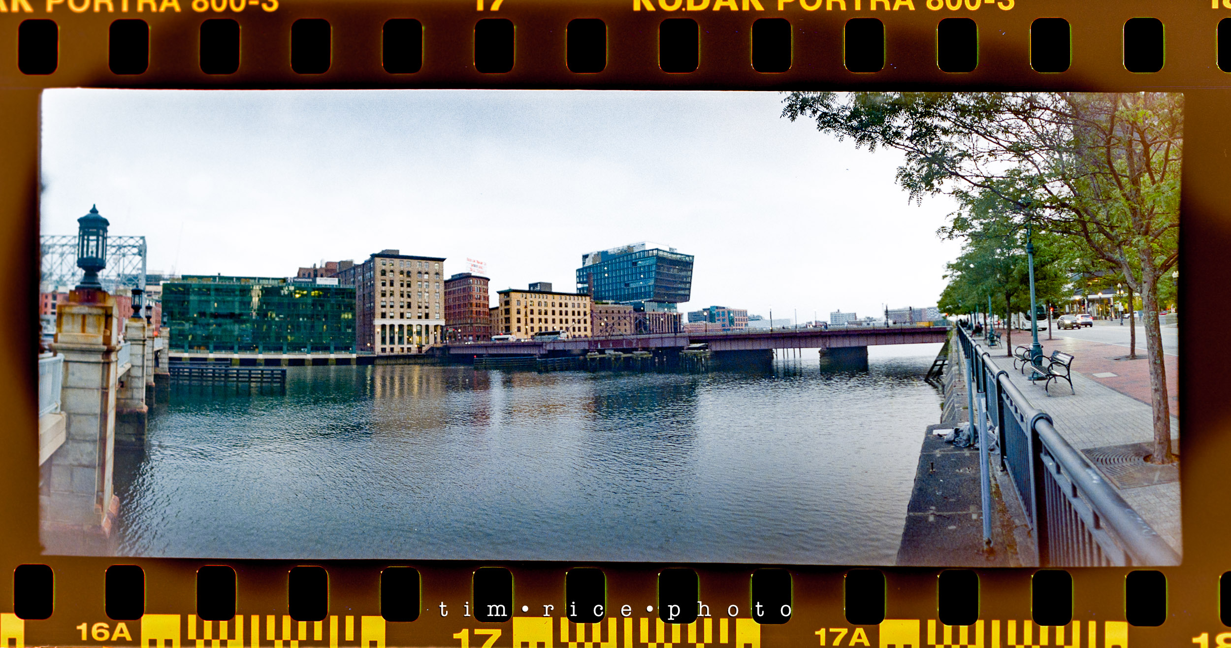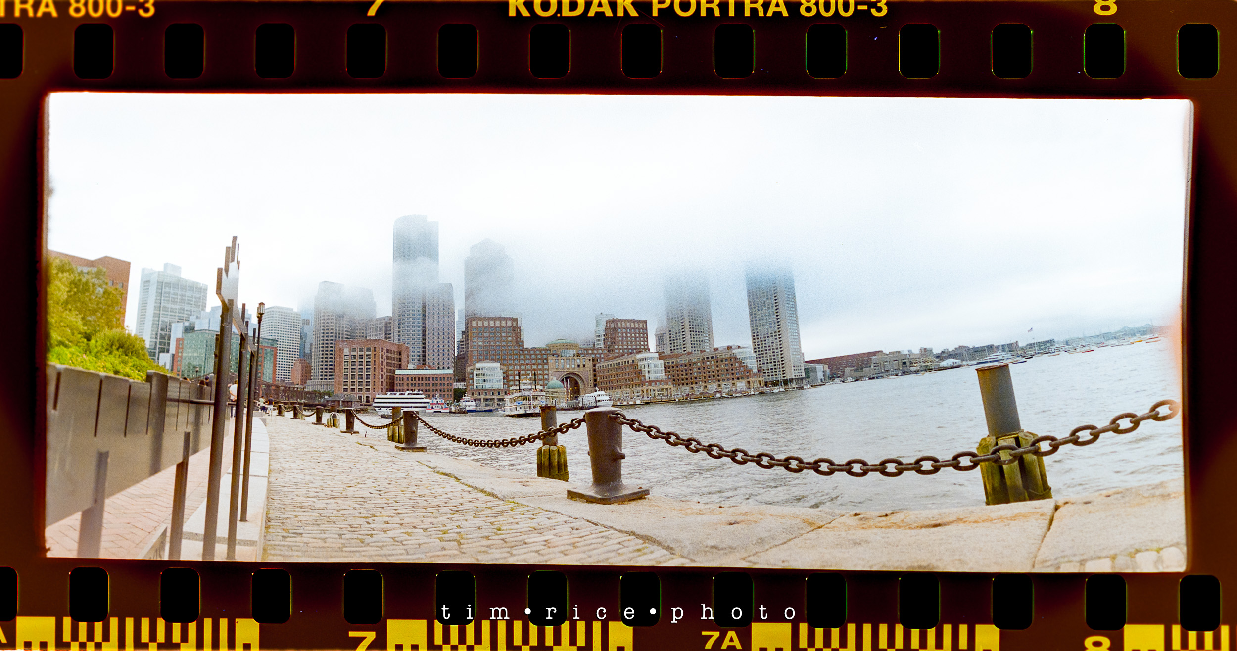 I shot a roll of film in Boston, along the water near Fan Pier and Atlantic Ave. I took the Widelux and the Hasselblad with me for the walk. The Hasselblad was not loaded correctly. No one to blame but me. Stupid mistake (that will only happen once), so all I have is the Widelux images. Sad because I really liked some of the shots I would have had with the Hasselblad – it means I need another walk. These panoramic images are a great consolation price, though. The best part of the walk was in front of the Boston Harbor Hotel. There were some sports cars on display. People were taking photos and posing with them. As far as I could tell, a few young men in their 20s were offering to take pics using their nice cameras. One of them saw me take a photo (the one with the cars below) and dashed over to me which made me feel old.