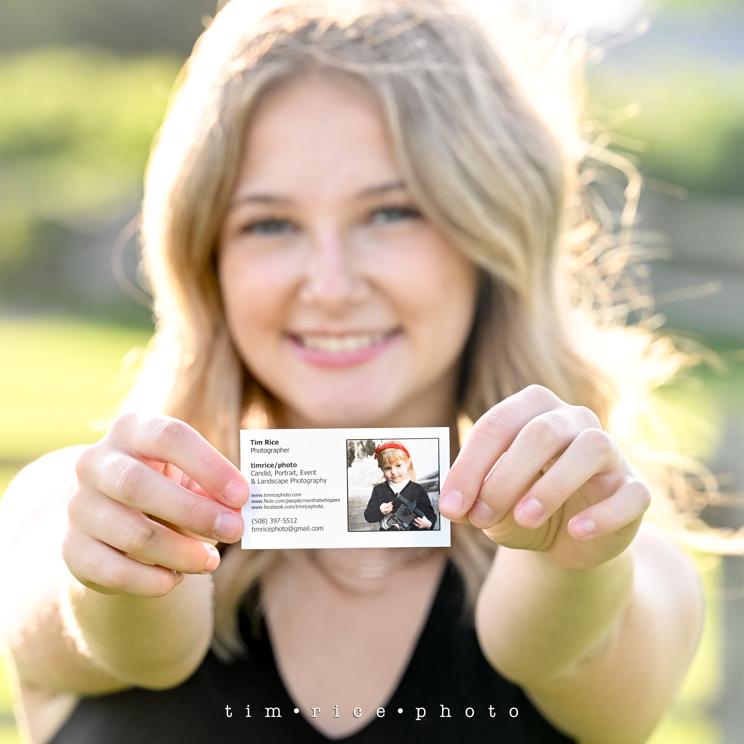 Gabby’s Mom and I worked together in my Staples Days. Though photography has been part of my life since I was a teenager, I gave up on it for a bit. After I sold my One Hour Photo lab, then lost a job at Kodak, I had walked away from my cameras for a few years, only shooting the occasional wedding or headshot. In a corporate job that had nothing to do with photography very few knew about my ‘talents’. Now and then I would bring photos of my kids to my cubical and people would ask who took them. Well I did. Dawn (Gabby’s Mom) was a teammate, friend and a mother. That led to me photographing her girls starting when they were really young. Dawn would bring the photos in to work, others would ask who did them and she would talk me up. The passion and the business of photography started to grow again, picking up many clients from Staples. With any new business I would need business cards, a photo of Gabby around two or three became the first business card I ever had for timricephoto.