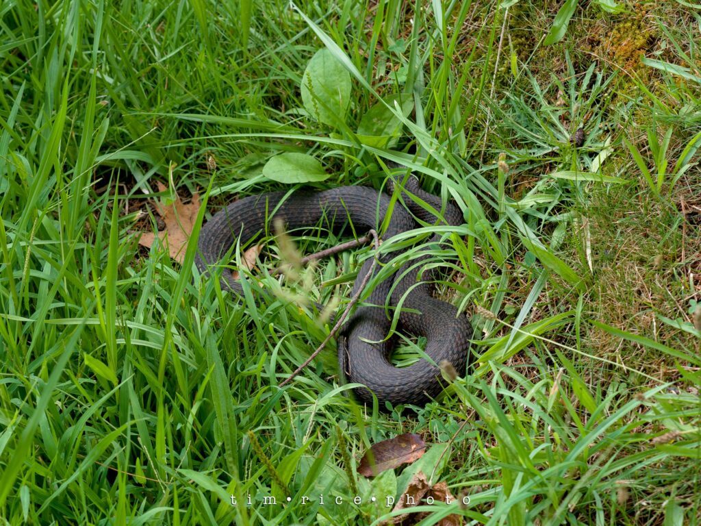 The things we come across on senior sessions—one of the largest water snakes I have ever seen. Just hanging out next to the brook, looking like a discarded bike tire.