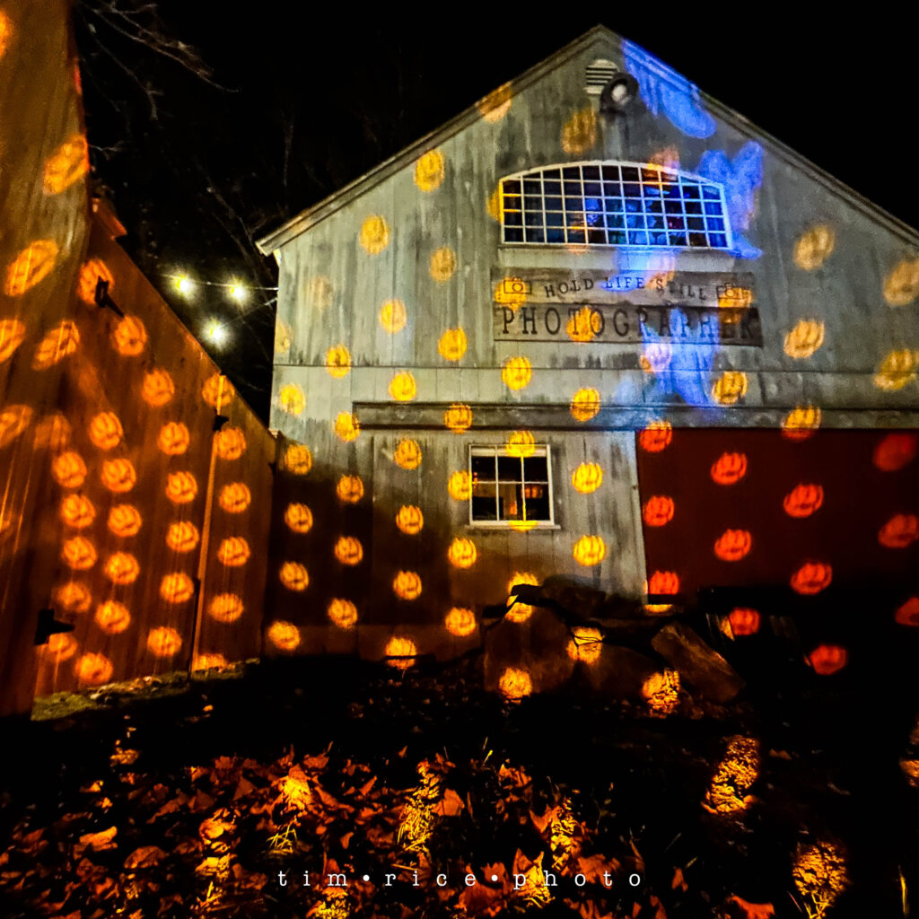 Tonight was the Medway Parks and Rec Annual Pumpkin Walk. It’s a huge town event that tons of people come out for. I was there taking photos of kids, pets, and families enjoying the night—more on that in tomorrow’s dailypic. After unpacking the truck, I grabbed a quick shot of the barn decked out for Halloween. I will have my annual Halloween celebration – the “Open Barn” event on Halloween day—with free photos for all in costume. See the deatials below, this will be my tenth time opening the studio up on Halloween for photos, it has been a blast each year, looking forward to next week.