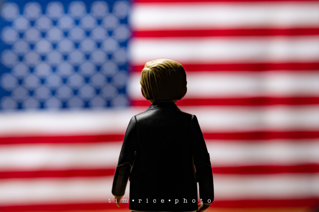 I own a Trump action figure. I have many action figures—they make for fun, creative photos. This particular figure, bought before the 2016 election, isn’t exactly flattering: the tie is comically long, the expression is a scowl, and one hand is flipping the bird. It was clearly designed as satire. Back then, I chuckled at its exaggerated features, but yesterday, as I pulled it out for a photo idea, I didn’t find it quite as amusing.