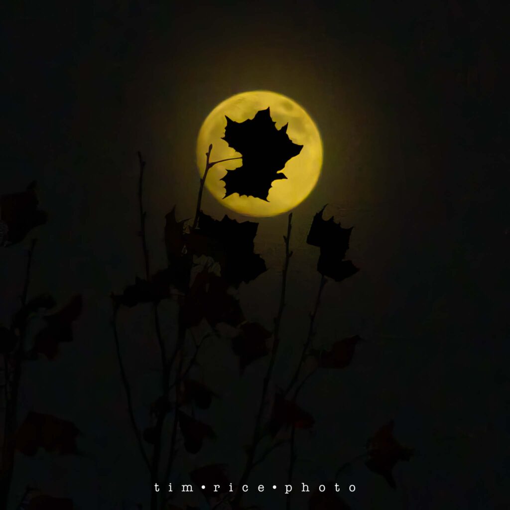 With the drone hovering above the tallest tree near my house, I watched the moon rise — a quiet moment at the edge of the season, framed perfectly by a single leaf.