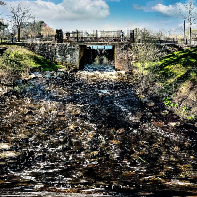 A wide-angle view of the damn at Choate Park. Taken with the drone, the goal was a ‘small planet’ style