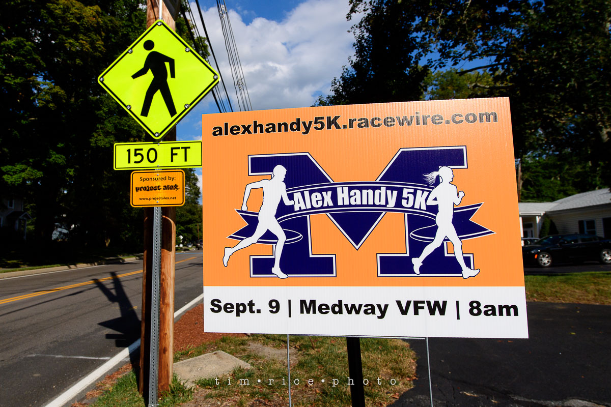 This Sunday, September 9th will be the 10th annual Alex Handy 5k. The Medway Secondary Parent Teacher Organization (MSPTO) took over Project Alex earlier this year – the charity that ran the race for the past nine years and hopes to continue the 5k going forward. The event and charity honor Alex Handy of Medway, a 13-year-old who was struck and killed while crossing Rte. 109 in 2006. Around town you may have seen the flashing crosswalk signs, I have one just outside my studio on Village St, and the crosswalks painted blue with the words Project Alex on them. Project Alex has raised over $250,000 since it started. In addition to sponsoring the signs and blue crosswalks, Project Alex promotes safety by giving away bike helmets and offers scholarships to local students. You can join the 5k on their website alexhandy5k.racewire.com. It is a great event for an important cause in our community. There are raffles, (you can even win a timricephoto print), giveaways, a prize of a free bike, awards for racers and face painting. The event starts at the VFW on Holliston St. Medway at 8 am.