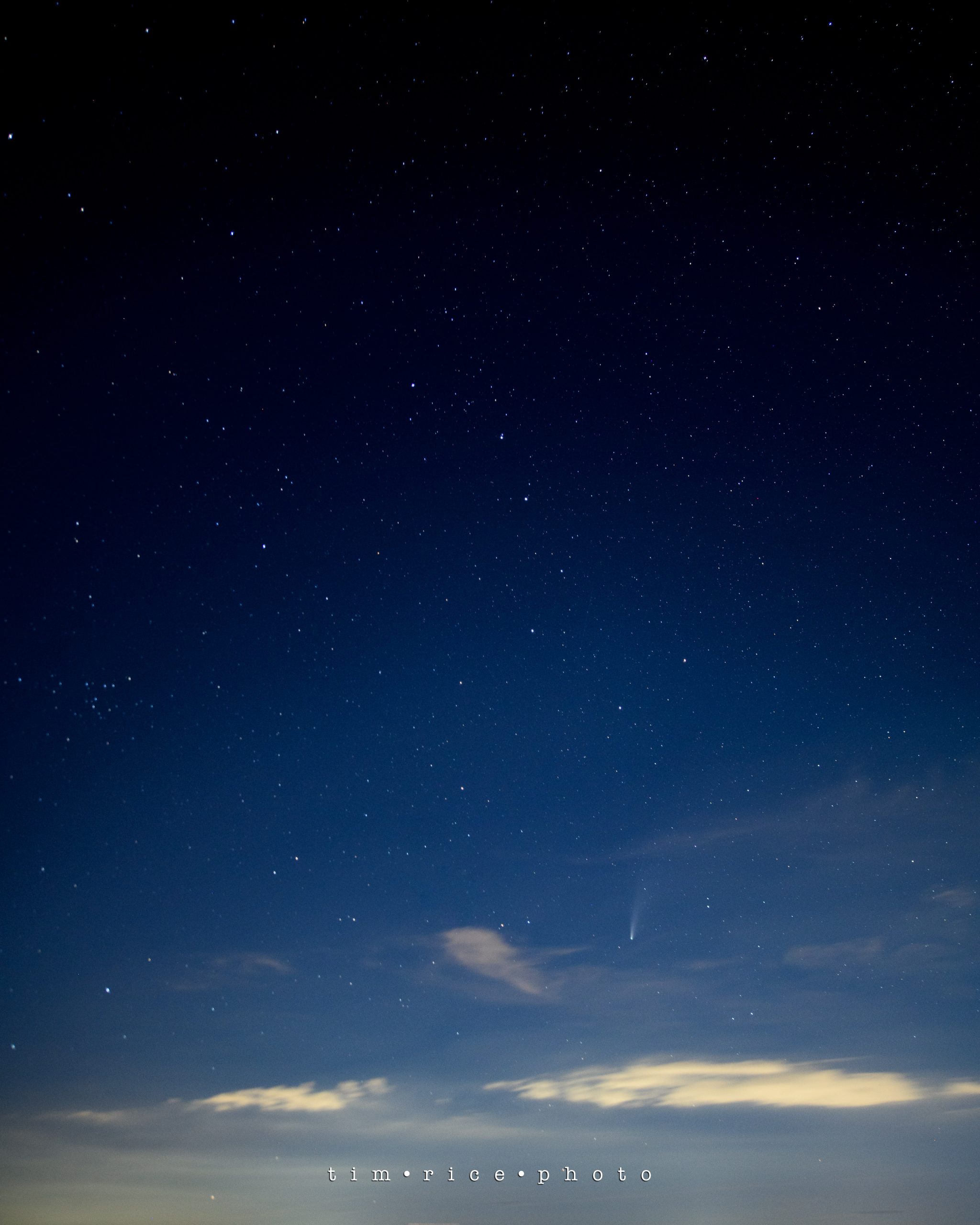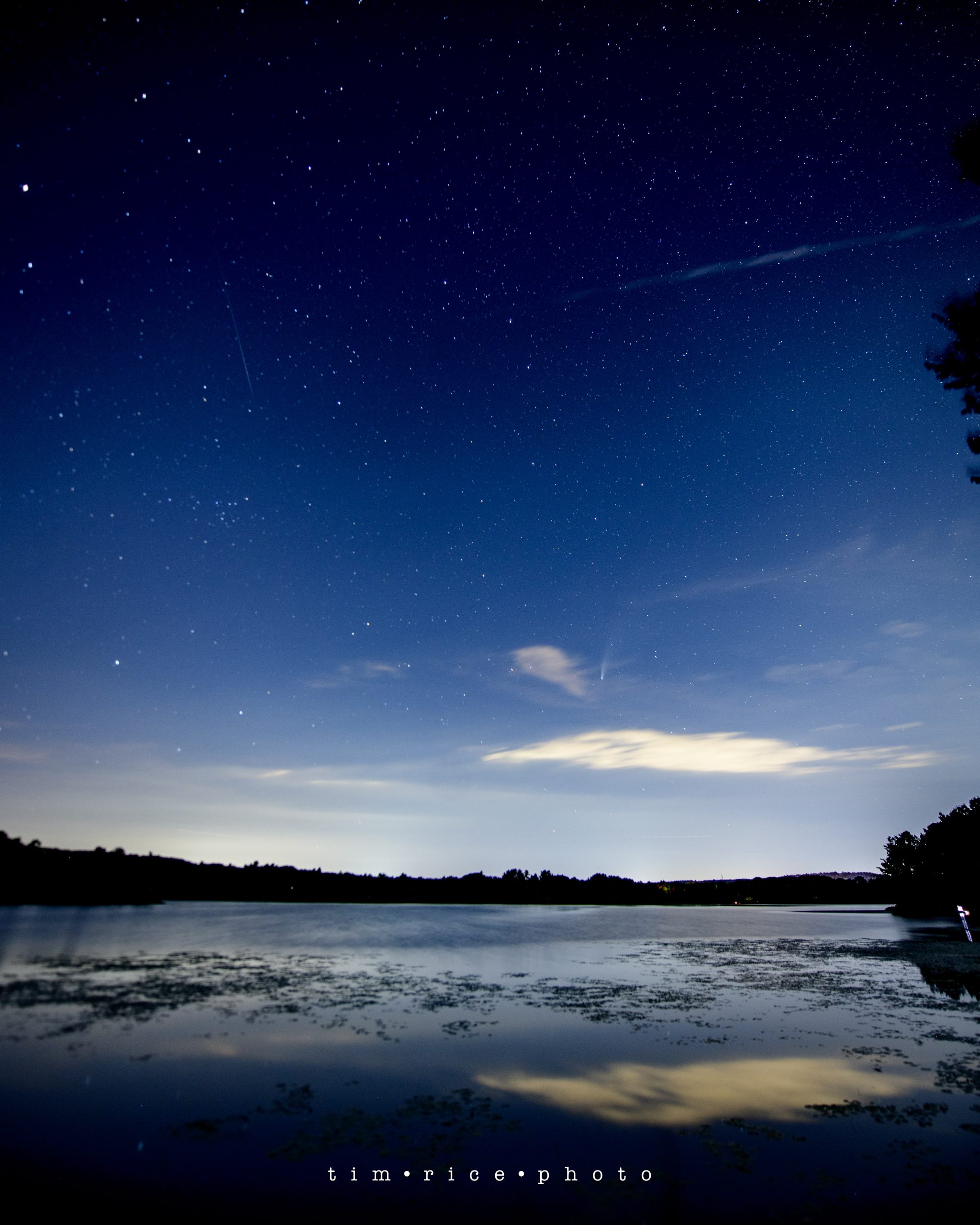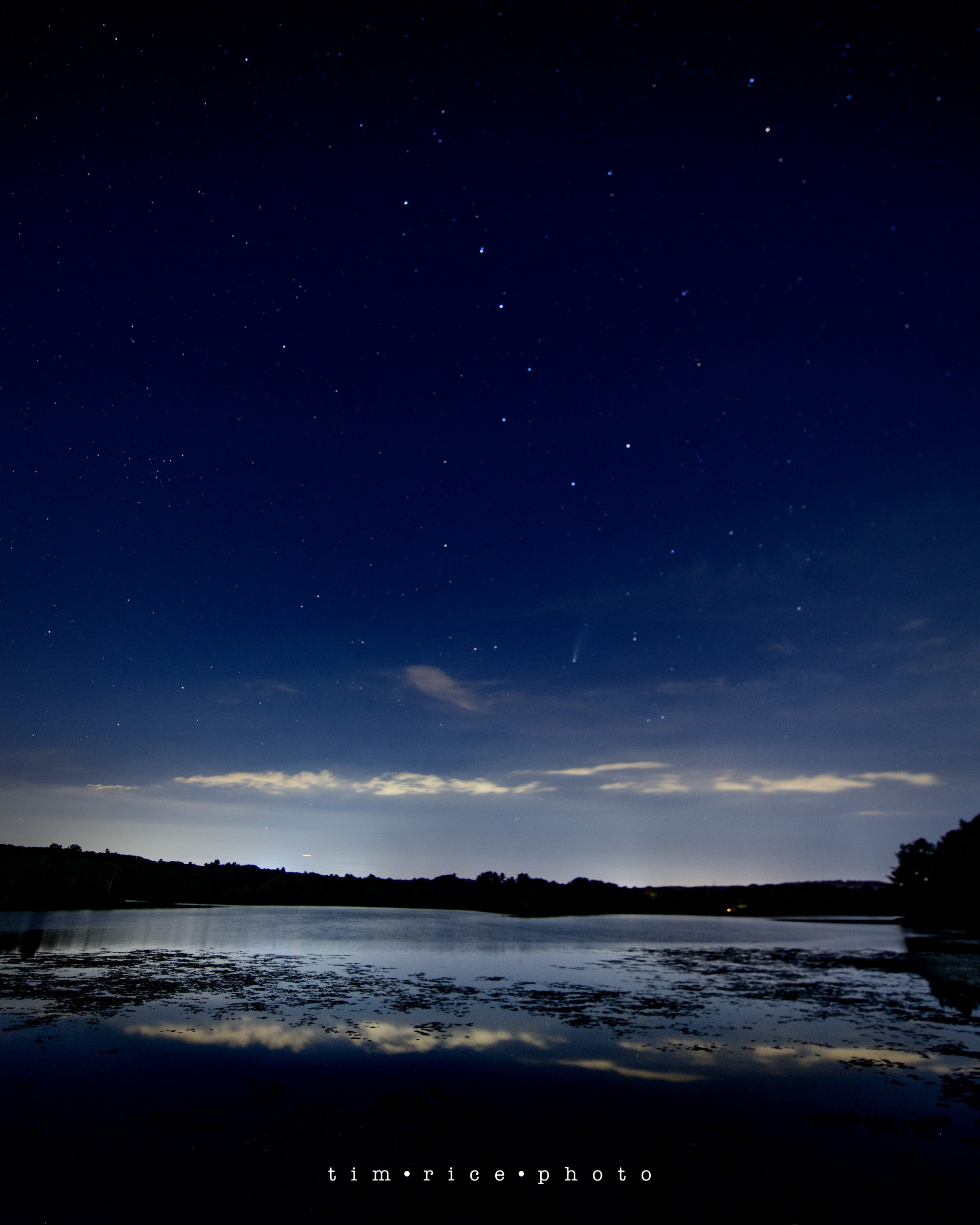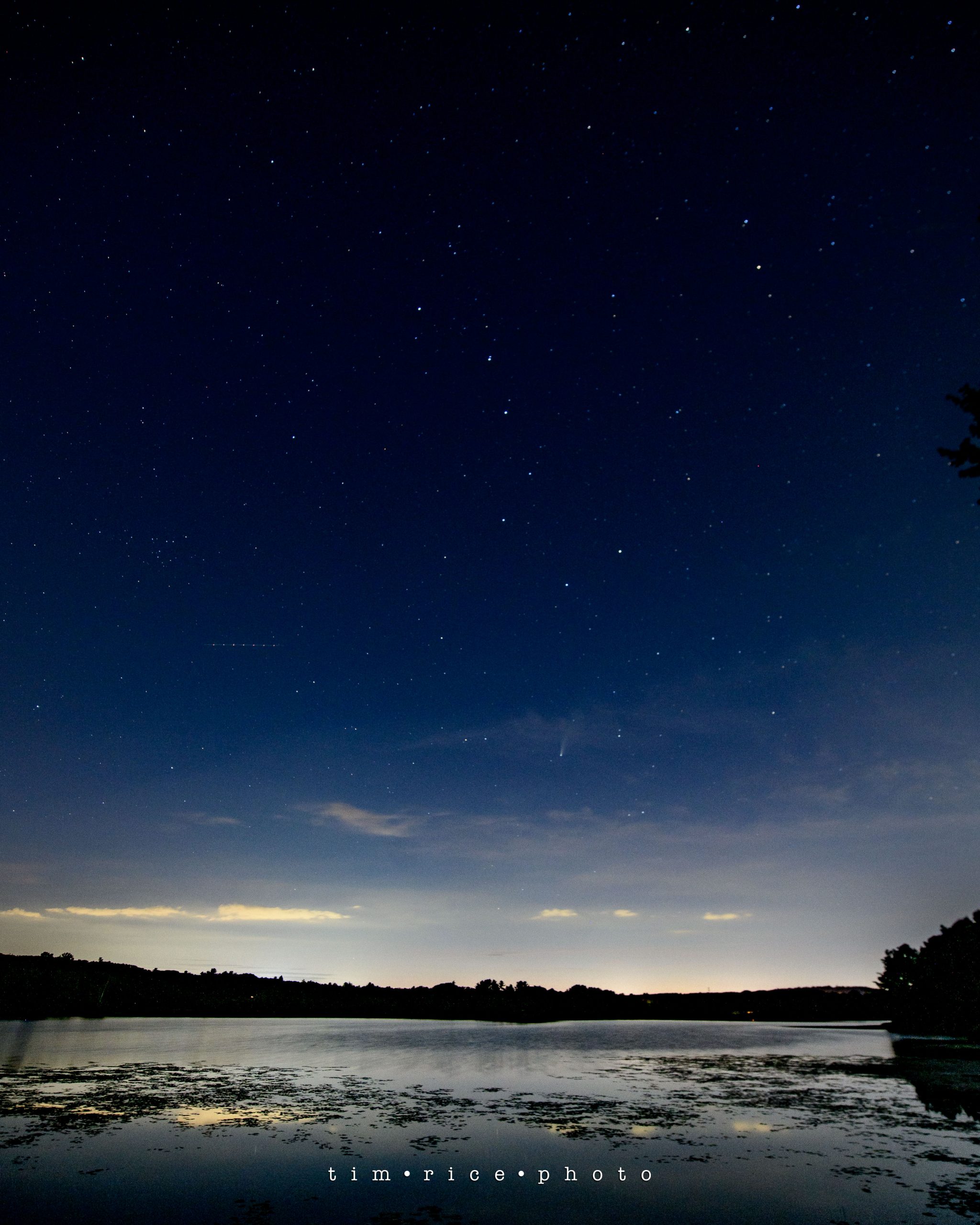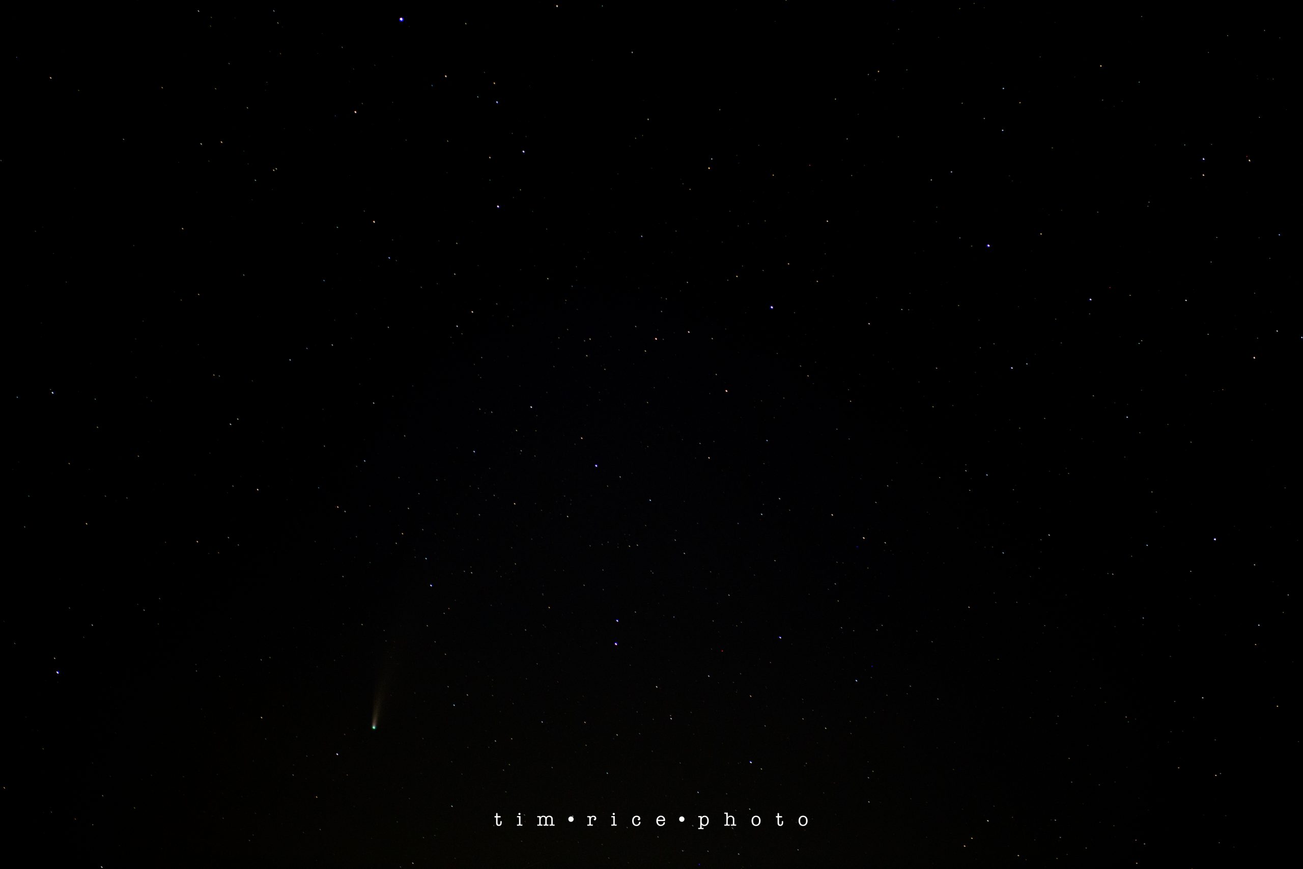 C/2020 F3 or NEOWISE was first seen on March 27, 2020, less than 3 months ago. So really, I picture somebody had an “oh sh*t” moment… “boss, look, comet!” (mumbled through a mask since it was March 2020.) Space is fascinating, scary, yet inviting. How do you not feel small and insignificant on a night like last night? I stood next to a lake, dodging mosquitoes, looking at a chunk of ice hurling away from us at 40 miles per second, 64 million miles away, in hope to take its photo and it be in focus. And this was my third night attempting to get this shot. I am a speck of a speck on a speck, with a camera. Humbled as we all might need to be now and then, but knowing I am less of a speck than the mosquitoes. Thank you to Wendy for the use of the perfect location and the company.