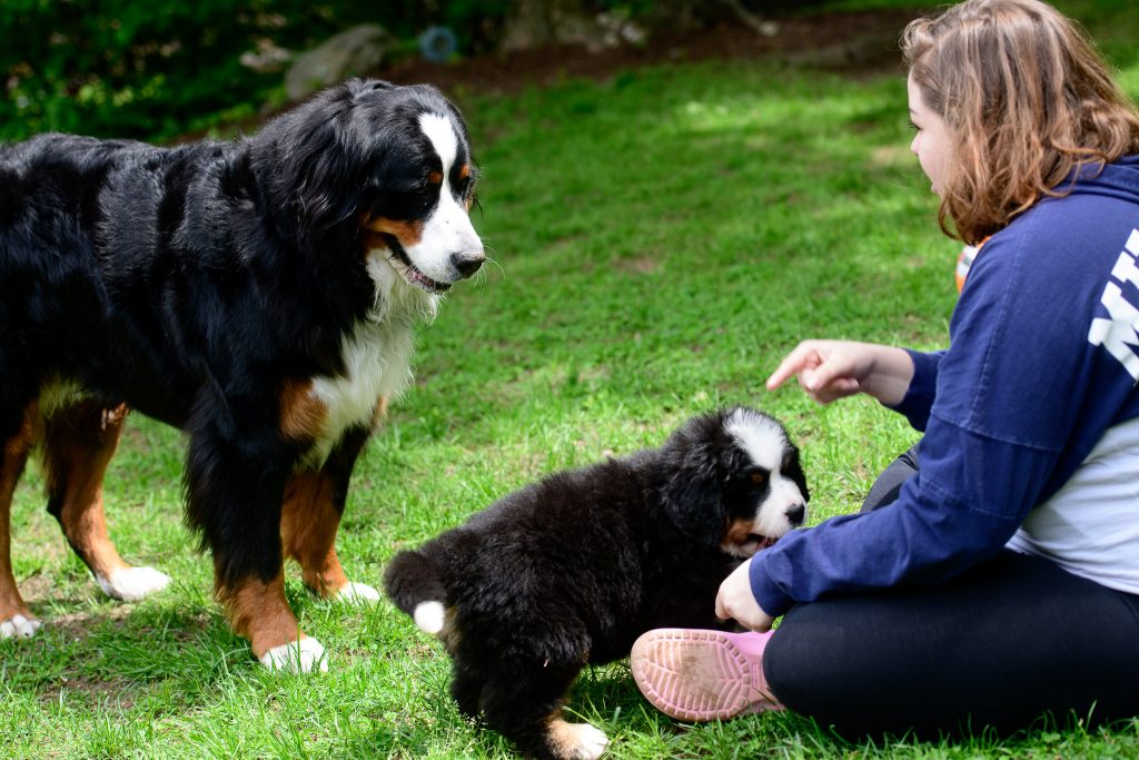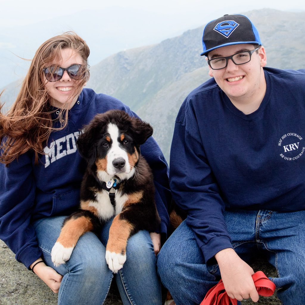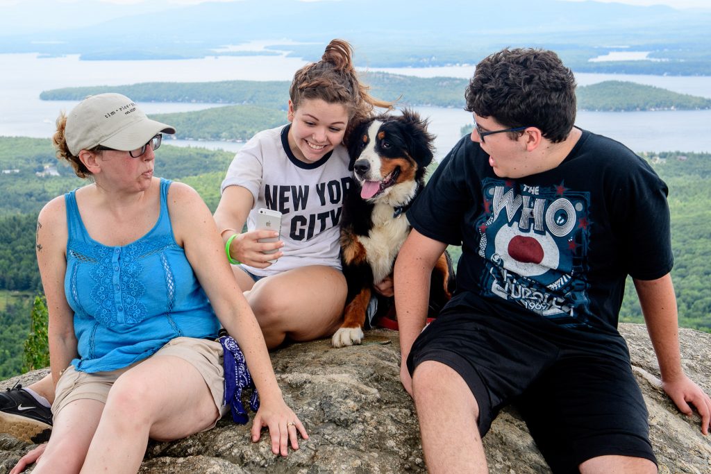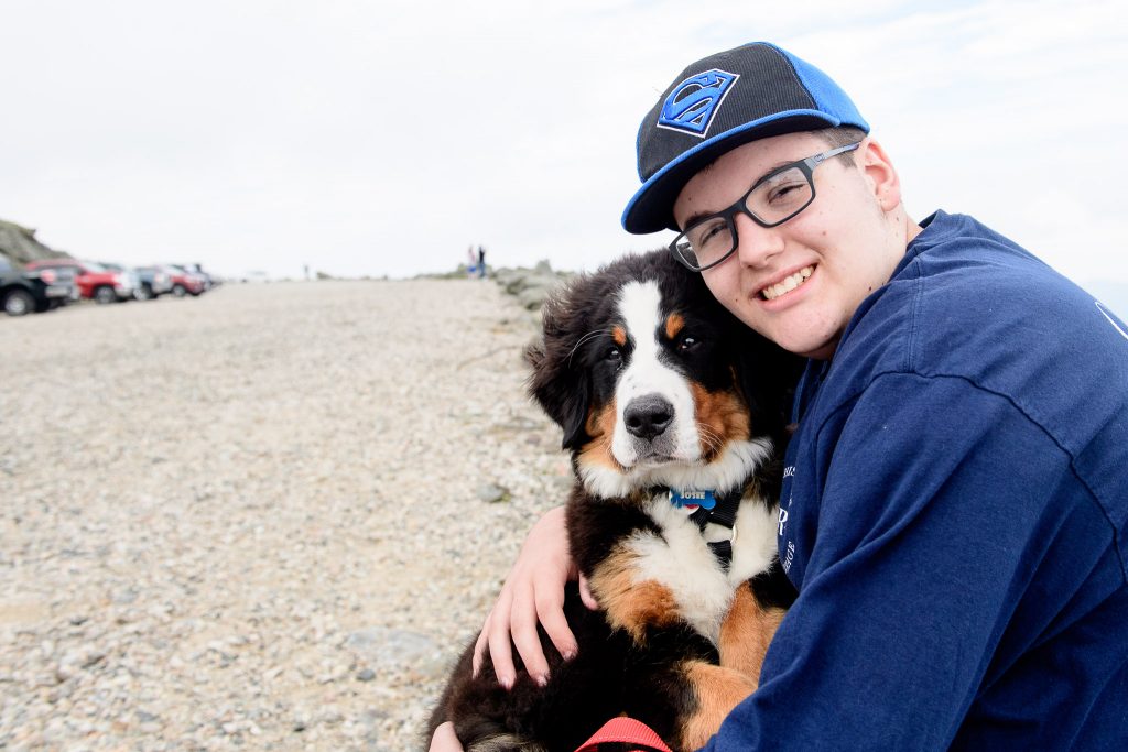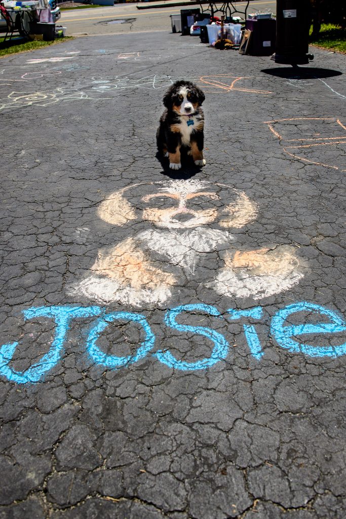 Josie’s Smile: Josie has been part of my family for 2 months. Arriving at about 10lbs, and easy to carry in one hand, now weighing in over 30lbs and makes me feel old when I have to lift her. Today we went to Mt. Washington, we drove the family up the auto road, Josie joined us. From the second she was out of the car it was the Josie show. This is not new, everywhere we go she demands attention. People look at her and smile, kids and adults all beeline to us to ask if they can pat her. Each and every person that meets this dog is greeted with affection and licks. We had to have met 30 families today. We met a man that is traveling the Appalachian Trail and has not seen his Berner in 5 months who lit up when he had time with Josie. We were called out by a Park Ranger (we thought we had done something wrong) who just had to pat her. A family from Canada that lost 2 in the last few years that told us stories of their Berneses. This dog is not for an introvert, of which I am at heart, but she makes me a better person, outgoing, approachable. I believe this dog was put on the planet to make people smile. It is that simple. I am glad each day we are the first that get to share Josie’s smile.