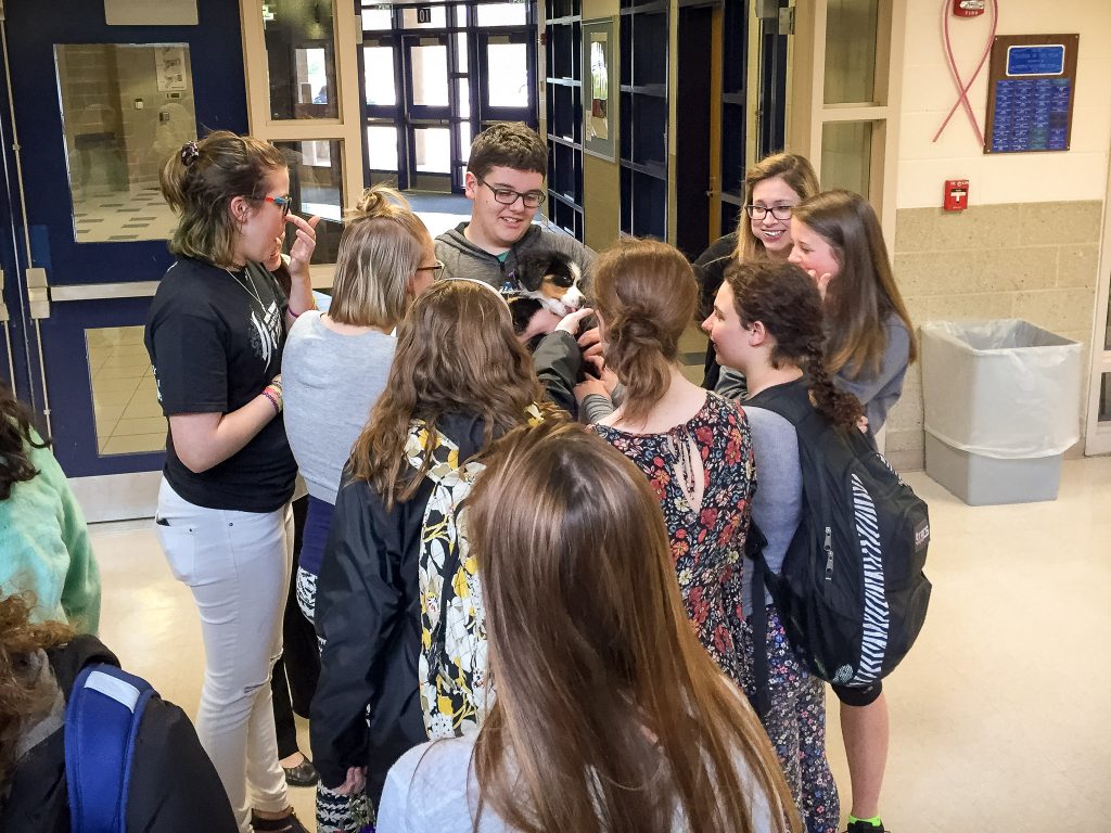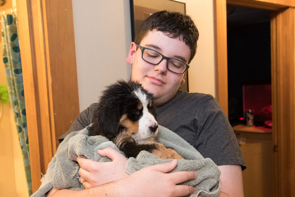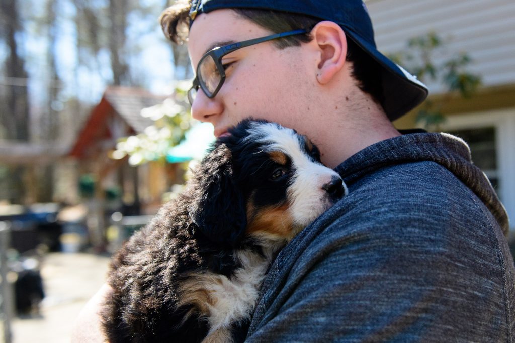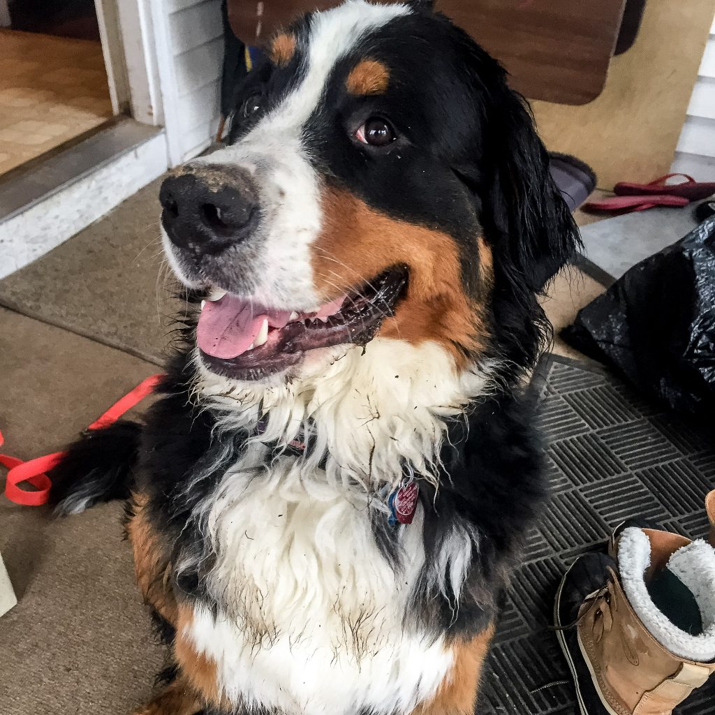 Josie’s Smile: Josie has been part of my family for 2 months. Arriving at about 10lbs, and easy to carry in one hand, now weighing in over 30lbs and makes me feel old when I have to lift her. Today we went to Mt. Washington, we drove the family up the auto road, Josie joined us. From the second she was out of the car it was the Josie show. This is not new, everywhere we go she demands attention. People look at her and smile, kids and adults all beeline to us to ask if they can pat her. Each and every person that meets this dog is greeted with affection and licks. We had to have met 30 families today. We met a man that is traveling the Appalachian Trail and has not seen his Berner in 5 months who lit up when he had time with Josie. We were called out by a Park Ranger (we thought we had done something wrong) who just had to pat her. A family from Canada that lost 2 in the last few years that told us stories of their Berneses. This dog is not for an introvert, of which I am at heart, but she makes me a better person, outgoing, approachable. I believe this dog was put on the planet to make people smile. It is that simple. I am glad each day we are the first that get to share Josie’s smile.