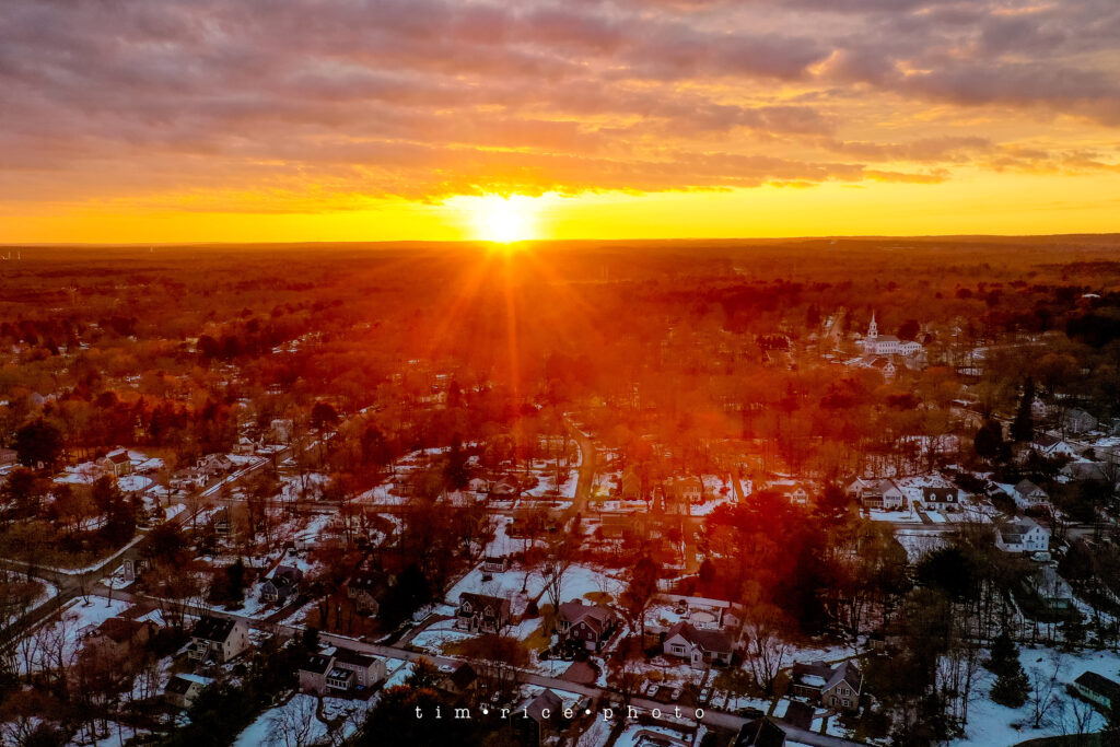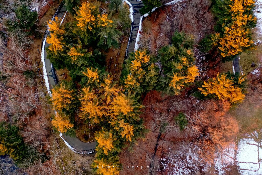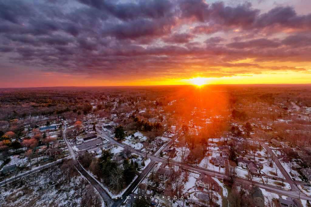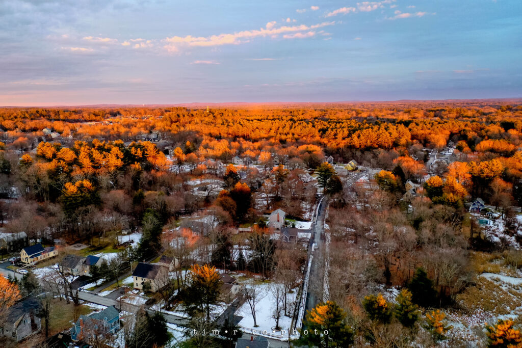 That beautiful warm light on a cold day. Overlooking my neighborhood, my house/studio is just about center 3/4 the way down. Below is the photo of how that great light hit the trees. I love that winter hue.