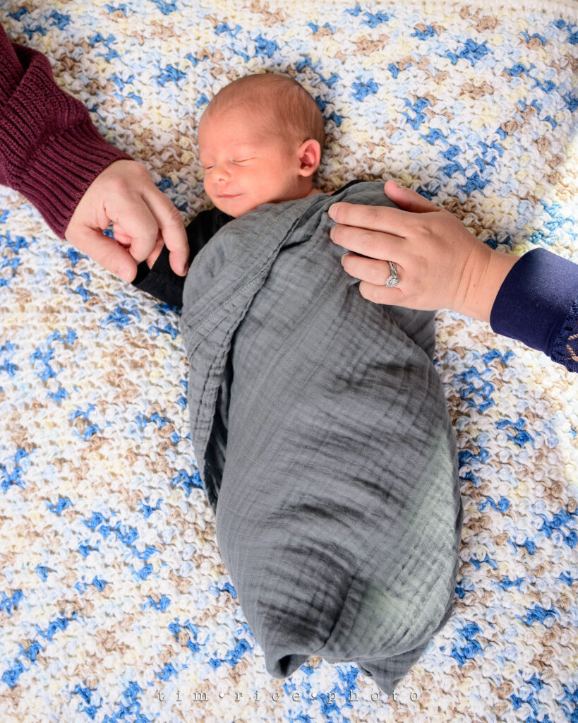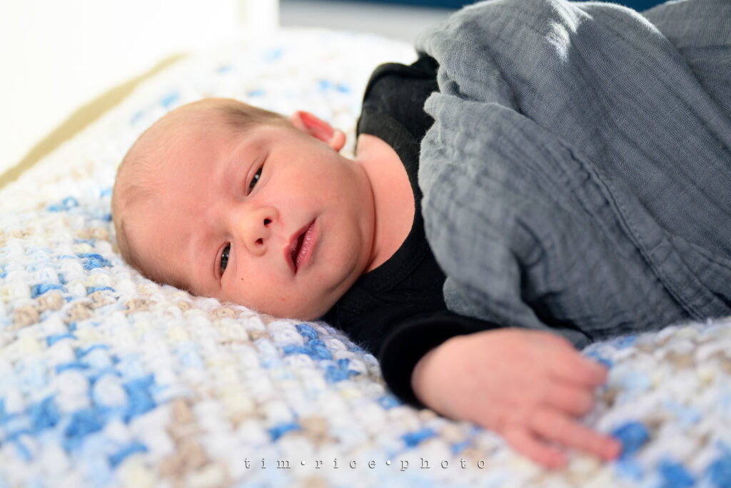 Three-week-old JD came into the studio this morning for his first session. He arrived in the world a bit early. Today would have been his due date. With those weeks under his belt, he was ready for photos. It took a while to calm down and get used to the lights, but in the end – this is the last photo taken of the session – it was worth the wait. I can’t wait to see him again.