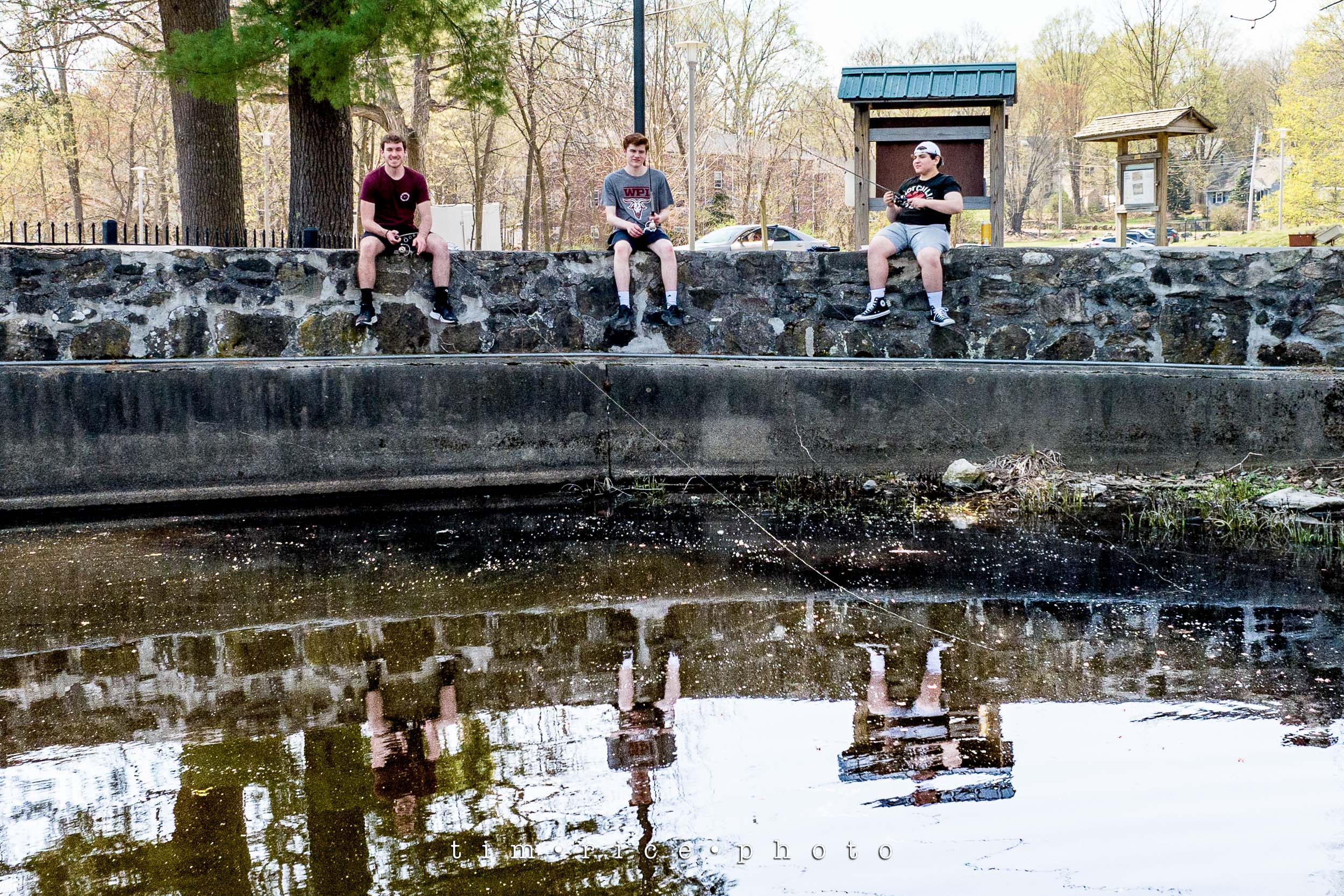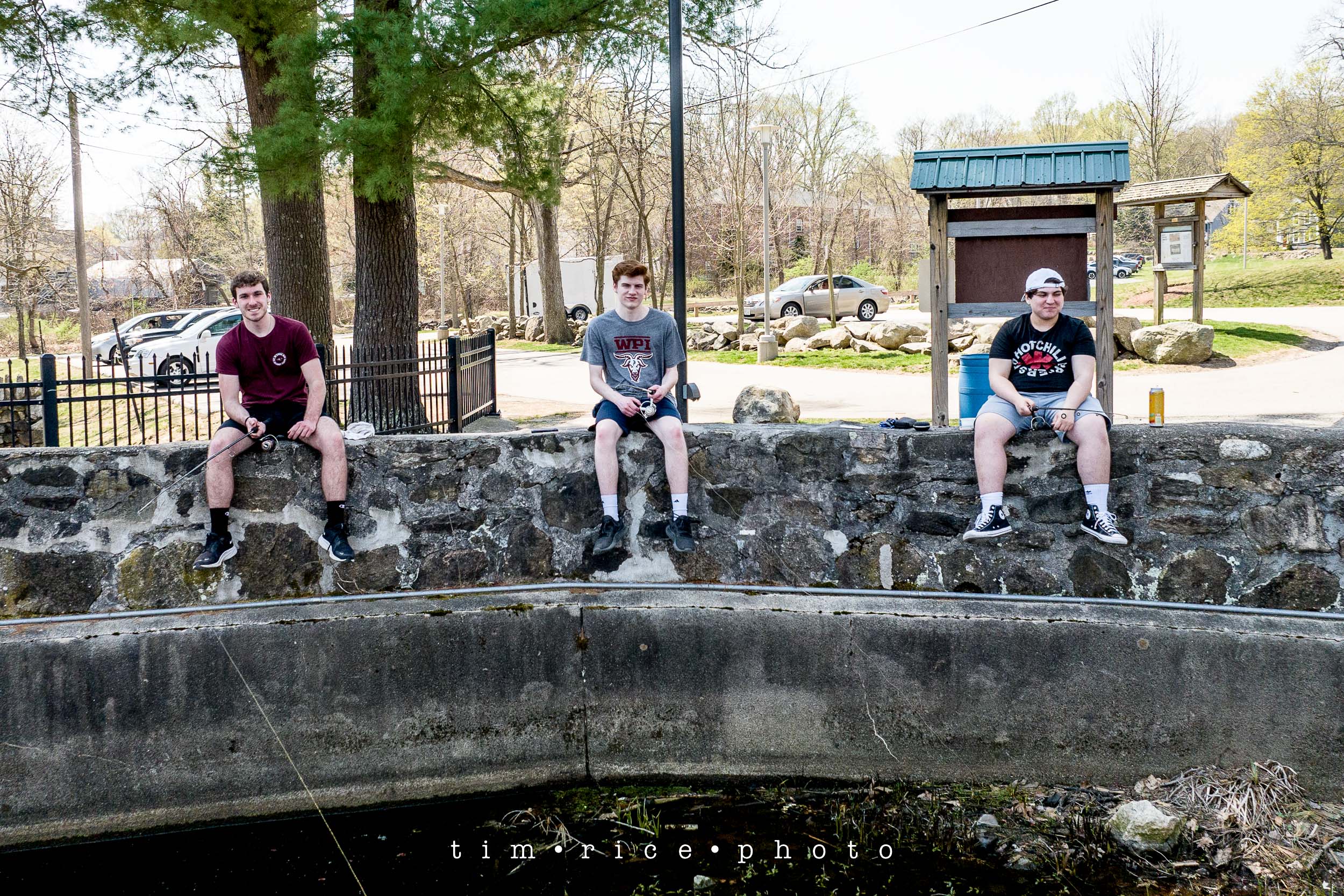 I had sessions all around today, all planned long before this great weather. One of them was at Choate Park, hanging out there enjoying the great day were three Medway High Seniors – Ryan, Andrew, and James. Last year I took each of their Senior Portraits in the same park. Today was a fun drone photo from over the water as they fished. There were even a few fish hooked while I was there.