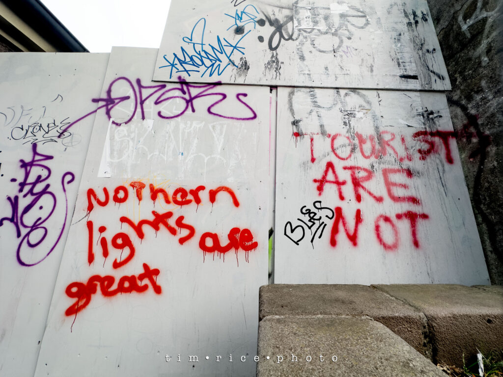 I am back home, landed a little while ago. This morning we had a few hours to use up so we wandered Reykjavik. I only had my phone with me, I love reading all the graffiti. Grabbed a few photos.