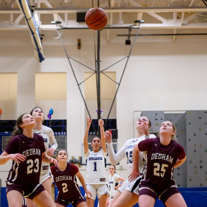 The Medway Mustangs Girls Varsity Basketball got a win over Dedham tonight. tr/trp