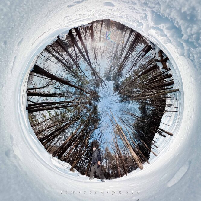 A winter selfie of sorts. No photoshopping magic, just a strategically placed 360° camera, a phone trigger in the other